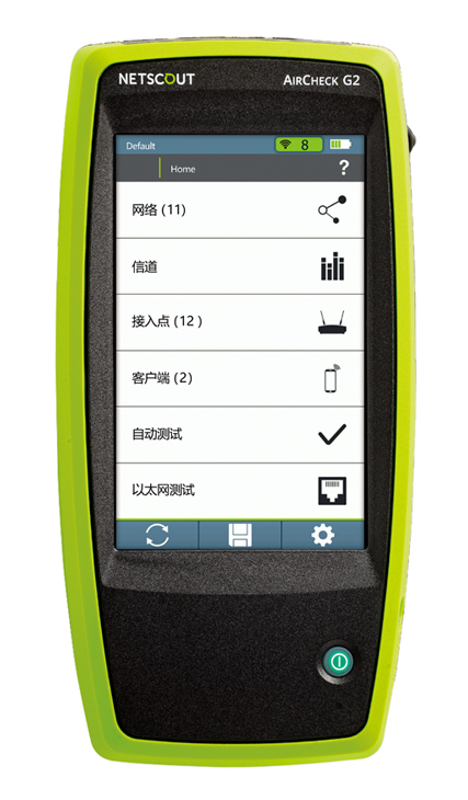 AirCheck G2 Wireless Tester 有一個(gè)靈敏的 5” 觸摸屏顯示器。主屏幕提供了便捷的導(dǎo)航,可以逐步查看: