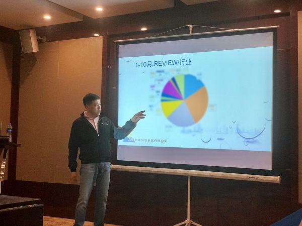 緊接著華東華南總經(jīng)銷商上海朗坤的銷售總監(jiān)陳波進行了前三季度的總結分析,同時也向大家展望了18年最后一季度的計劃安排以及未來3年的發(fā)展安排。